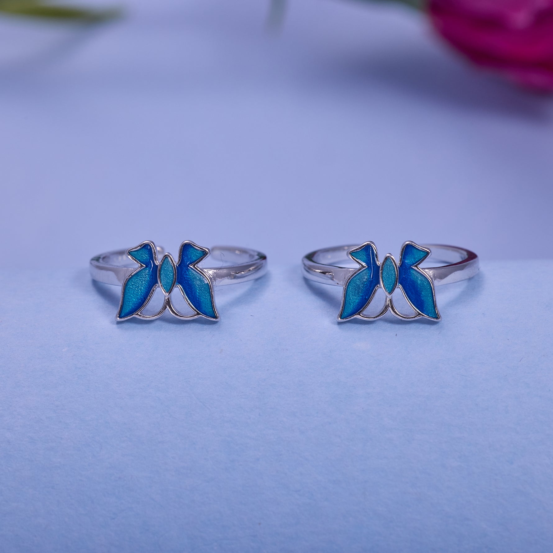 IRAFINE Silver Blue Enamel Butterfly Toe Rings – Wings of Elegance